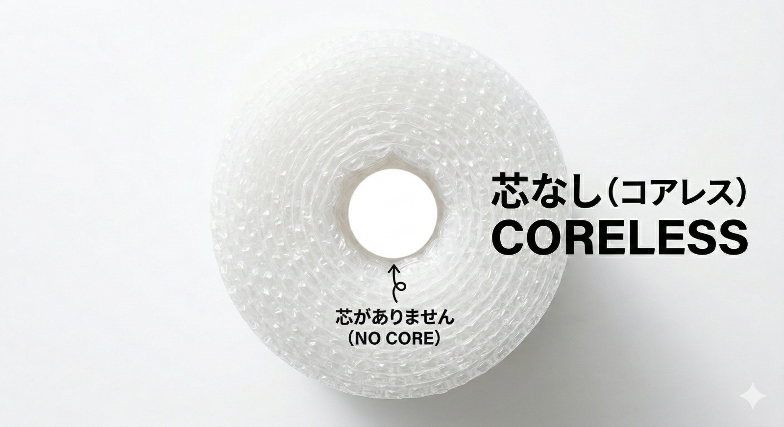- ● 保管効率アップ:芯がない分、ロールの中心部までしっかり巻かれているため、保管スペースも無駄にしません。