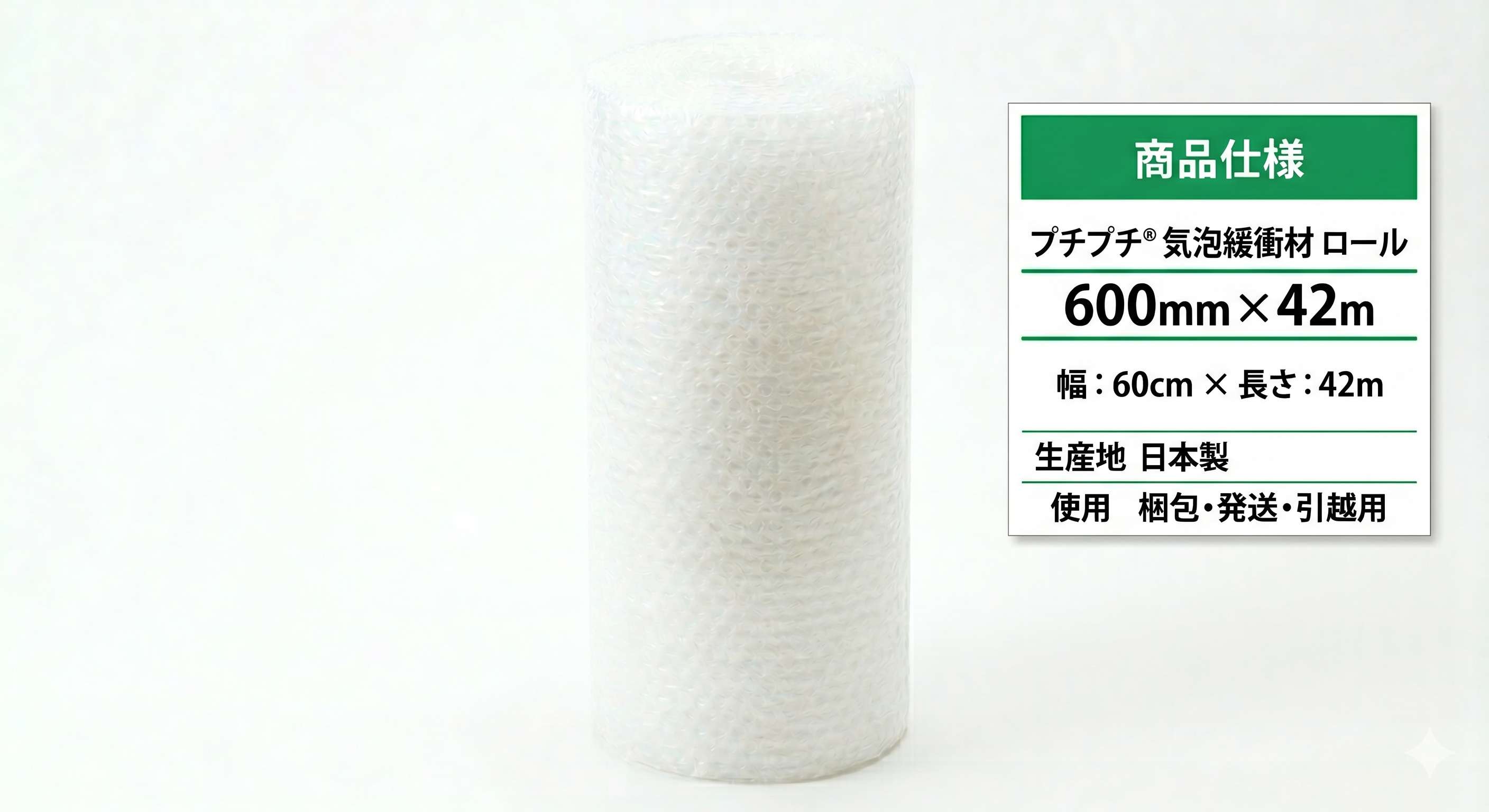- ● ゴミゼロへ:従来のプチプチにある紙管(段ボール芯)を一切使用していません。